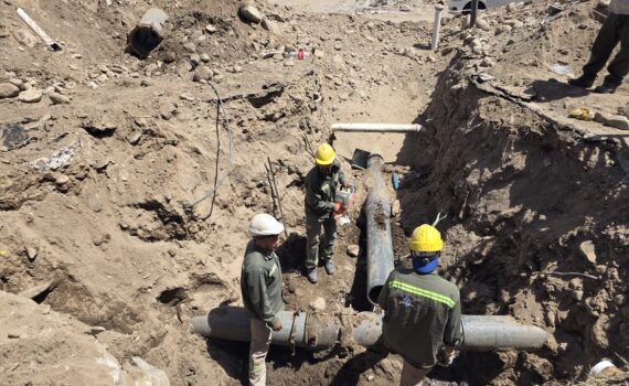 En la zona sur, se trabajó sobre el caño de impulsión del Vial 1, de PVC 315 mm, entre calles Copiapó y Domingo Vergara, en el marco de la vinculación del sistema Antinaco. Además, se repararon cañerías principales en Valle Chico, restableciendo el servicio tras las intervenciones.